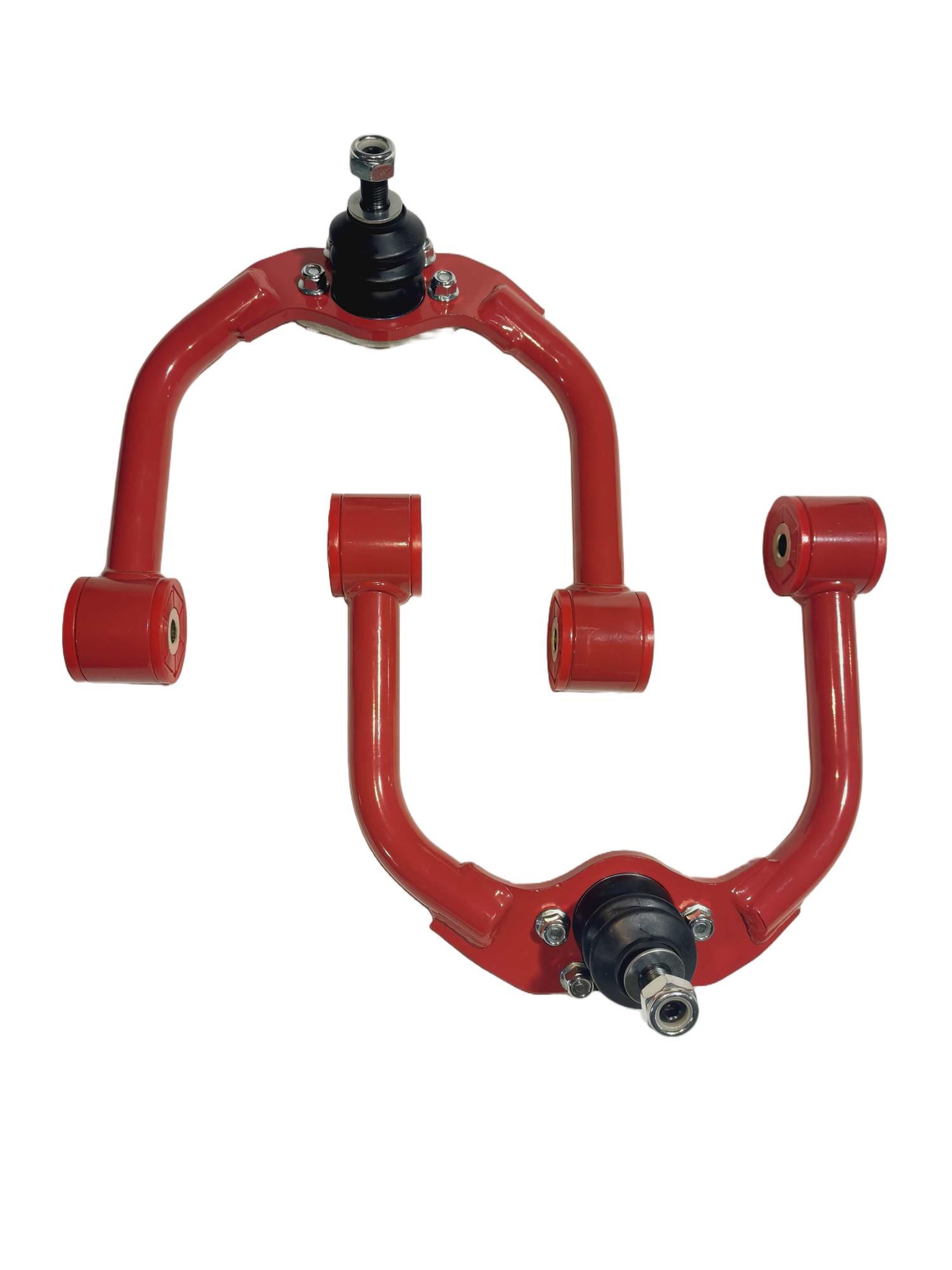 - Complete upper control arm kit for both left and right side, includes new ball joints, OE style rubber frame bushings (installed), washers