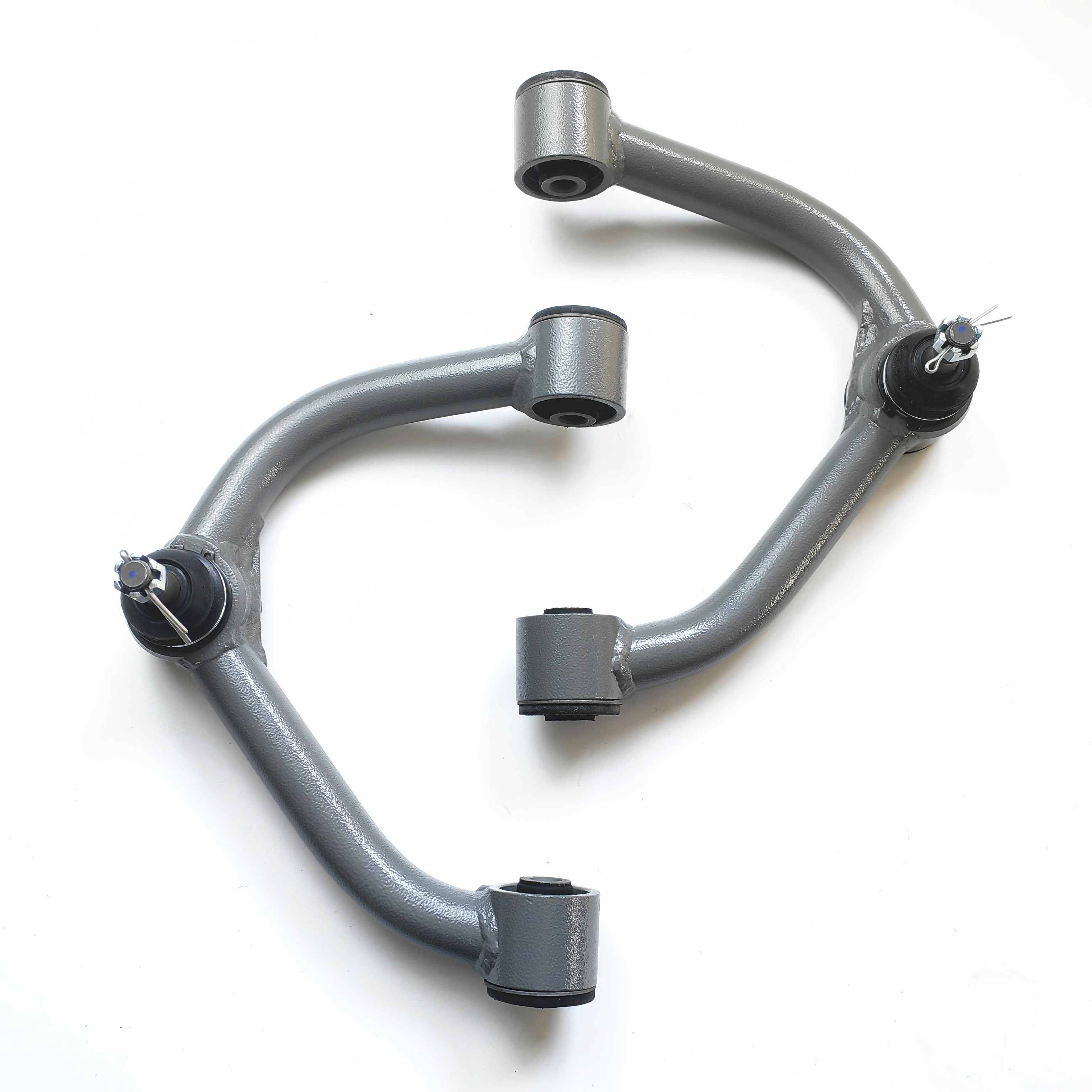 - Complete upper control arm kit for both left and right side, includes new ball joints, OE style rubber frame bushings (installed), washers
