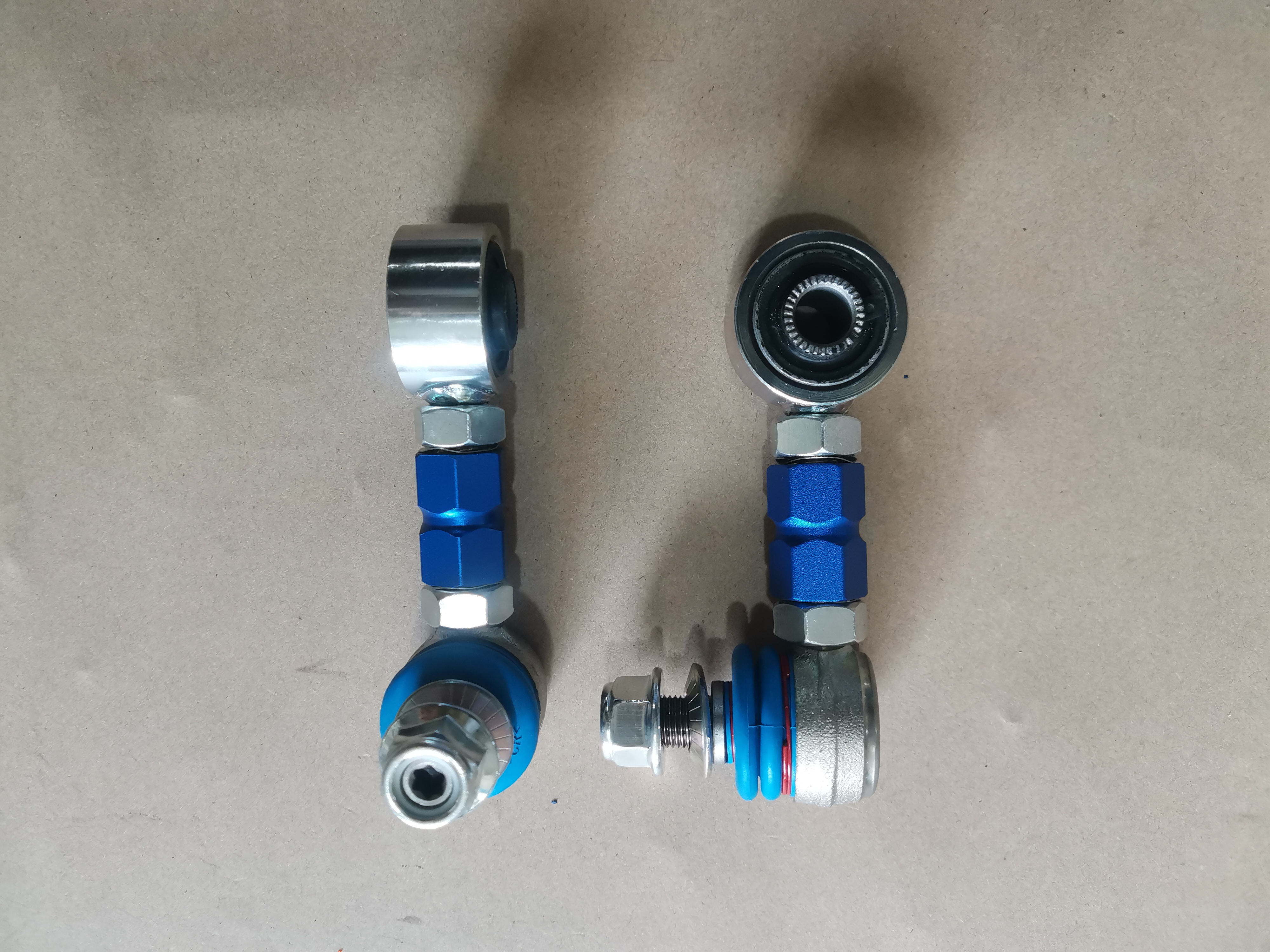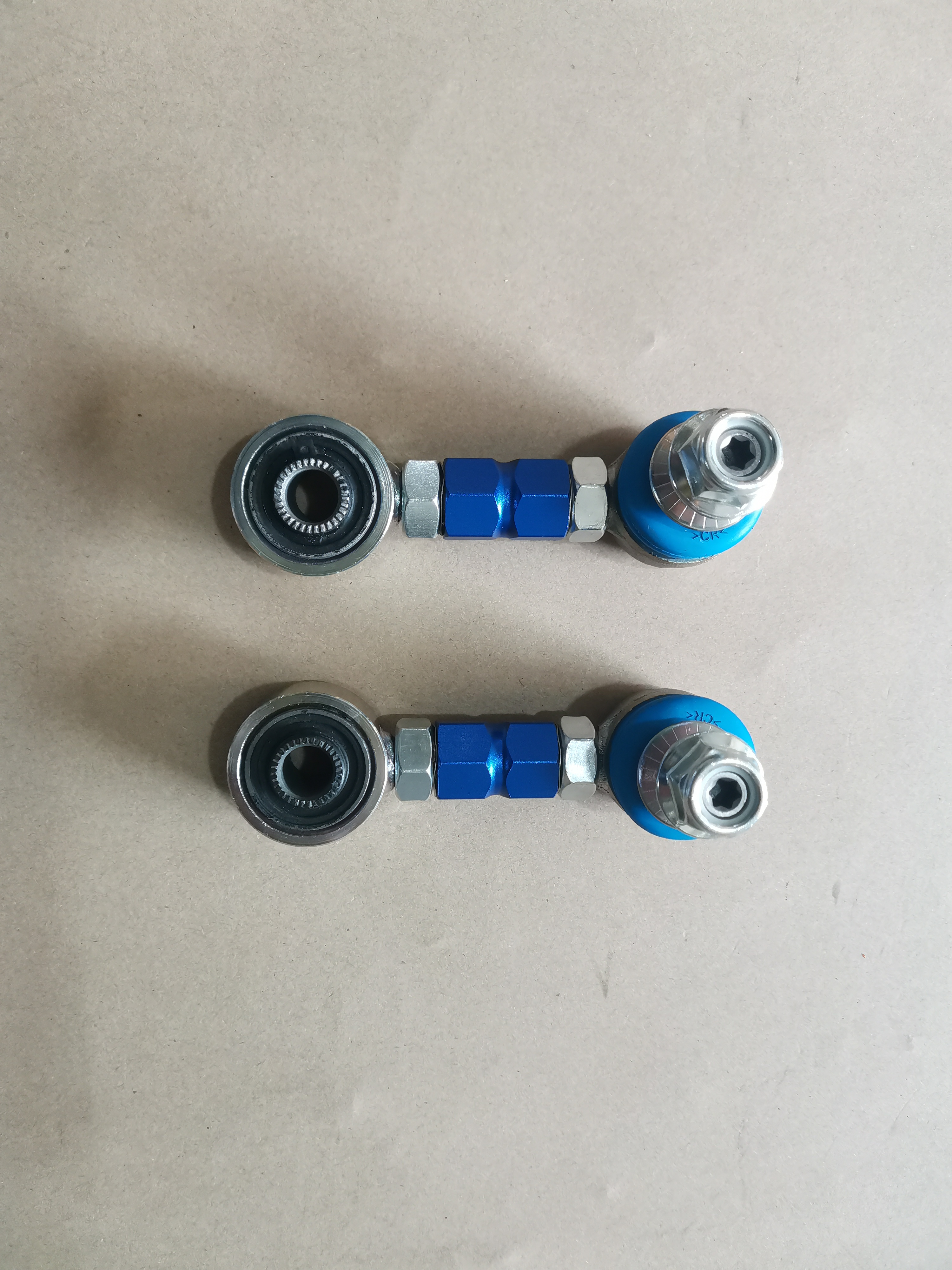 Stabilizer link is connecting the sway bar and the suspension arm (or damper). When the height of a vehicle is lifted, the angle of the lower arm changed. HD adjustable stabilizer link allows to adjust the link length and let the sway bar function effectively. HD adjustable stabilizer link made from tight ball joints and with rubber boots to extend its life.
