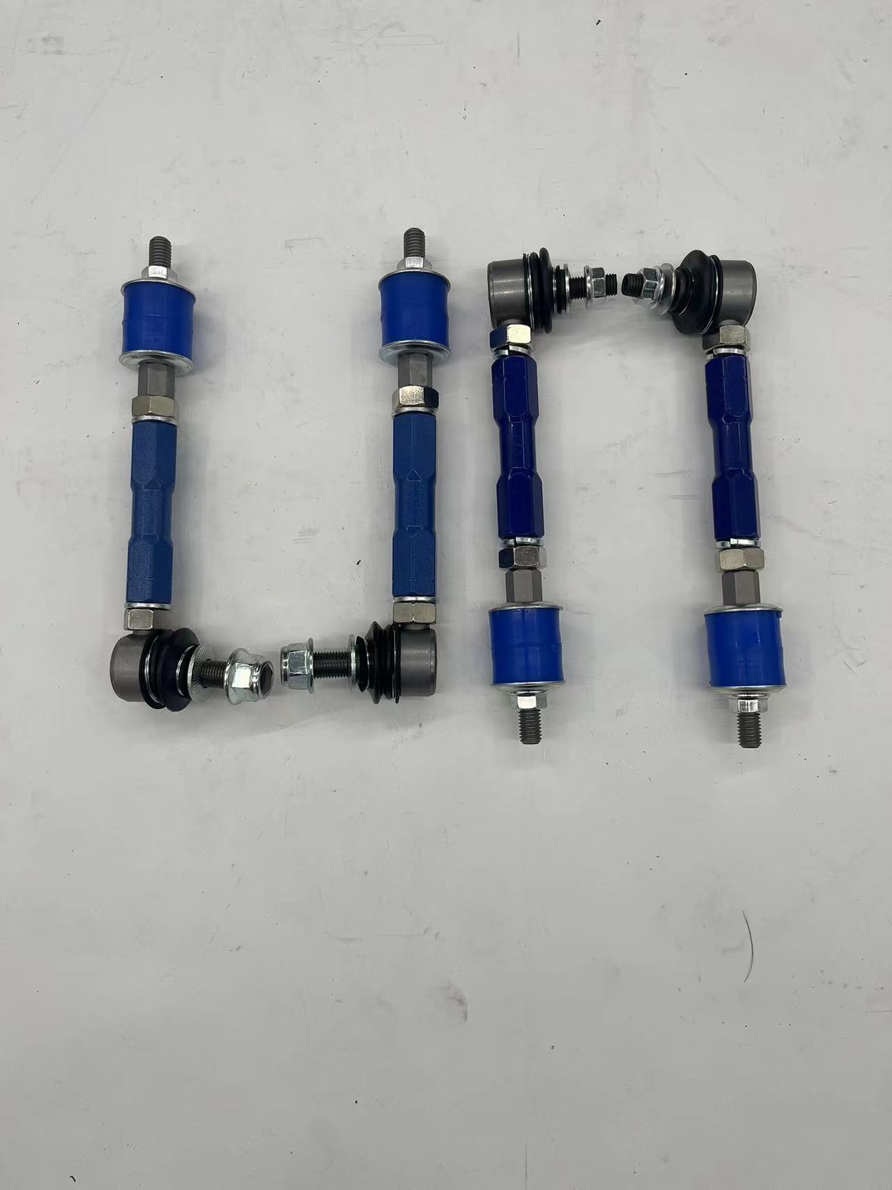 Stabilizer link is connecting the sway bar and the suspension arm (or damper). When the height of a vehicle is lifted, the angle of the lower arm changed. HD adjustable stabilizer link allows to adjust the link length and let the sway bar function effectively. HD adjustable stabilizer link made from tight ball joints and with rubber boots to extend its life.
